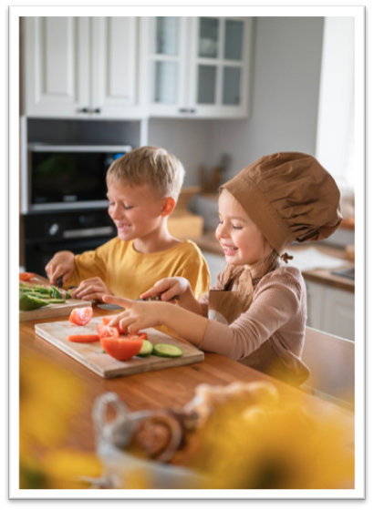 Cut veggies into stars, hearts, or even dinosaurs. The sillier, the better. Turn broccoli into “tiny trees,” or make veggie faces on their plate. A little imagination goes a long way.