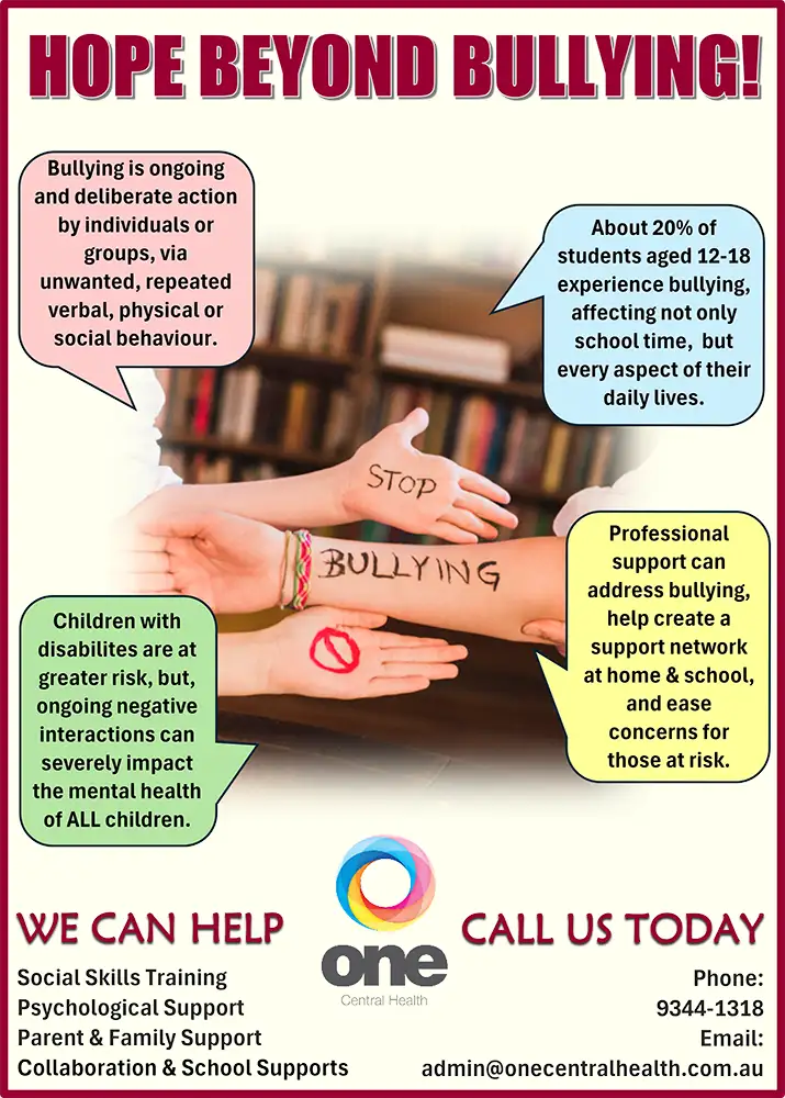 Professional support can address concerns regarding long-term adverse outcomes, such as social isolation, depression and self-harm, resulting from bullying.